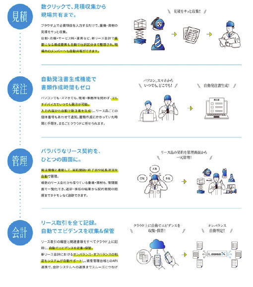 Lease Xは現場のリース契約業務を効率化しながら、会計エビデンスを収集するシステムです。