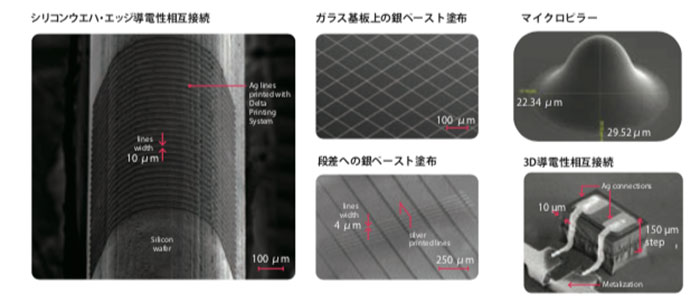 従来のインクジェット方式で課題となっていた「サテライト液滴」を排除することで、にじみのない均一な線幅を実現。これにより、1~10マイクロメートルオーダーの微細配線を、高い歩留まりで形成することが可能となった。